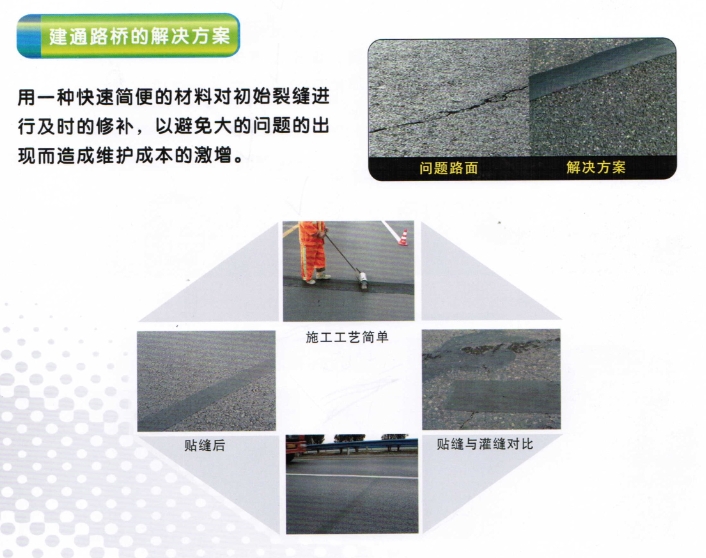 6、适用性强:可用于水泥路面、沥青路面的裂缝处理,还可用于旧路面罩面前的裂缝处置;